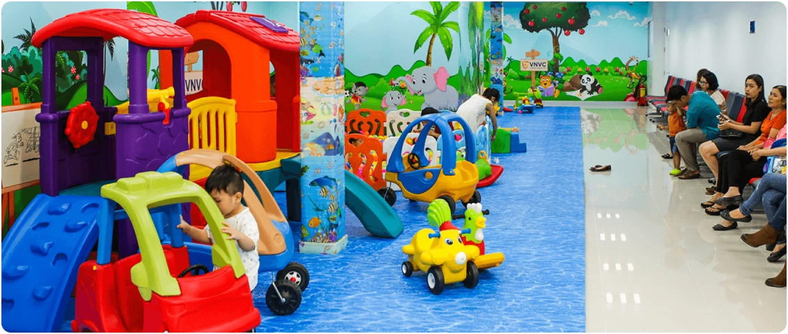 Hàng trăm trung tâm tiêm chủng VNVC trên toàn quốc đều được trang bị cơ sở vật chất khang trang, hiện đại, phòng khám, phòng tiêm với đầy đủ các trang thiết bị y tế cao cấp, đạt chuẩn Bộ Y tế. Không gian phòng chờ trước tiêm và sau tiêm thoáng mát, đầy màu sắc cuốn hút, tạo sự thân thiện với trẻ.